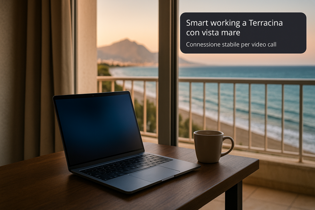 Appartamenti pronti per il lavoro da remoto: connessione multi‑fibra aggregata con backup automatico, postazione ergonomica e posizione centrale a pochi passi dal mare.